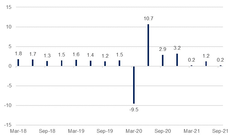 China’s Q3 real GDP growth results, which disappointed to the downside in data released today, are potentially a foretaste of more disappointing Q3 data to come, especially from those countries that have been pursuing a zero-Covid strategy. When combined with ongoing supply chain issues, and the energy crunch which began to make itself felt during the period, the headwinds to global growth have been mounting. While the expectation remains that the global economic environment will improve as the pandemic pressures ease, the fallout from its economic disruption will remain a challenge for some time to come and these trends will remain in play through the final quarter of the year.