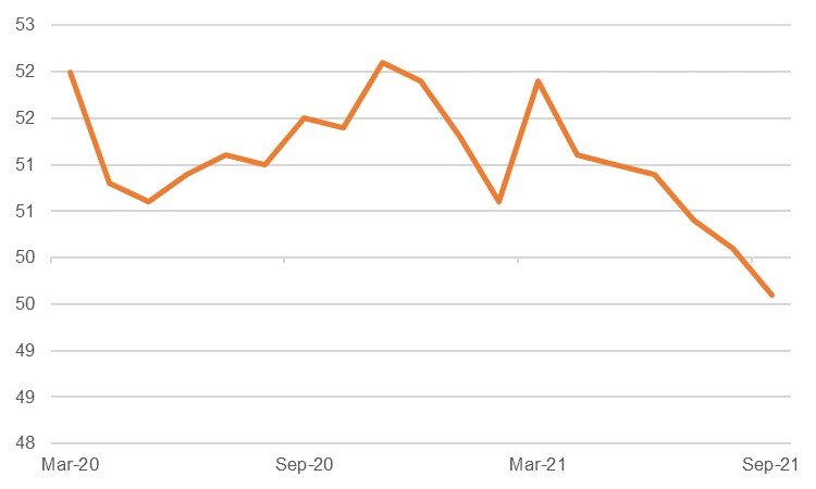 The ongoing Covid-19 crisis also arguably weighed on Chinese production in the third quarter. Despite comparatively high vaccination levels the Chinese government has pursued a zero-Covid strategy, and new outbreaks and associated restrictions held back activity in Q3. For instance, Japanese car firm Honda was forced to suspend its operations in Wuhan in August as workers were unable to come to work. This contributed to China’s manufacturing PMI falling back to 50.1 that month, the lowest levels since the Covid-driven 35.7 in February 2020. In September the index dipped back below 50.0 to 49.6.