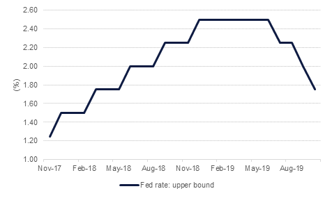 The US FOMC released their meeting minutes for the October rate setting meeting showing cautious optimism on trade, with increased focus on corporate debt levels. While discussing cuts to the rate in October, a number of participants said that even though uncertainty over trade policy had depressed business investment they saw “little indication that weakness in business sentiment was spilling over into labor markets and consumer spending”. The Fed has been monitoring signs that low corporate spending will have a broader effect on growth. The Fed’s cautious optimism easing political tensions, paired with a growing awareness of financial risks, show a shift at the Fed. The minutes confirmed no immediate plans for changes to the policy rate, in line with Jay Powell’s statement in October, with the committee waiting “material” change in economic conditions before it considers any rate changes.