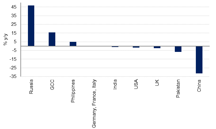 Kuwait, Iran and Nigeria also saw a double-digit decline in visitor numbers to Dubai in February. However, this was offset by nearly 50% growth in the number of Russians visiting Dubai, as well as solid growth in visitors from Australia and the Philippines.