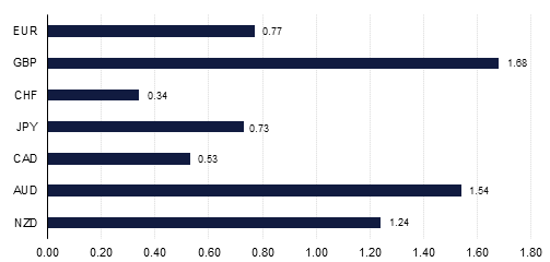 AUD was the second best performer after Sterling last week, with AUDUSD gaining 1.57% to finish the week at 0.7887, only finding meaningful resistance at the 76.4% one year Fibonacci retracement (0.7897). The AUD found support after economic data showed increased business confidence, consumer confidence and inflation expectations. Surveys from NAB showed that business confidence increased to 7 in September, up from 5 the previous month, while surveys from Westpac showed that consumer confidence has increased 3.6% m/m in October, up from 2.5% the previous month. In addition, Treasurer Scott Morrison states that the AUD and interest rates are “at appropriate levels for the nation’s economy”, highlighting a degree of comfort among policy makers.