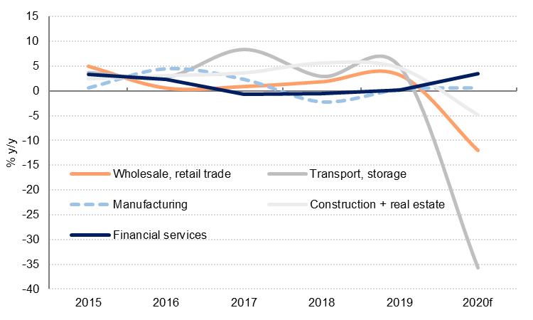 Dubai’s economy contracted by -10.9% y/y in 2020, more than the -8.0% we had estimated, according to the latest data from the Dubai Statistics Centre. Unsurprisingly transport & storage and hotels & restaurants were among the worst affected sectors, contracting by -35.7% and -33.1% respectively. Wholesale & retail trade GDP declined -12.0% in 2020 and construction contracted -2.6%. Most services sectors contracted last year due to the lockdown and restrictions on activity.