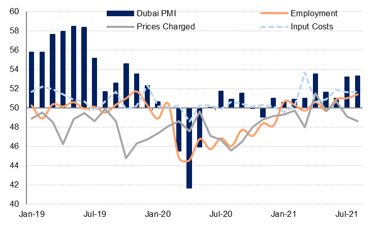 We remain optimistic that private sector business conditions will improve further in Q4 2021 as Expo 2020 gets underway and the recent further easing of travel restrictions boosts visitor numbers during the high season for the travel & tourism sector.