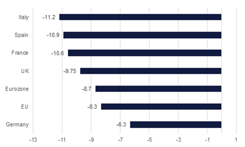 The European Commission (EC) has published new economic forecasts for EU states, which are almost universally downgraded from the previous outlook. For the EU 27 as a bloc, the EC forecasts a contraction of -8.3%, rebounding by 5.8% next year. This compares to a forecast of -7.4% in May. France, Italy and Spain are forecast at -10.6%, -10.9% and -11.2% this year, while Germany’s 2020 outlook saw a minor improvement, from -6.5% to -6.3%. The EC still produces forecasts for the UK, which it projects to shrink by 9.8%, and grow 6.0% next year – although that projection is predicated on there being a ‘status quo’ on the trading relationship, and UK premier Boris Johnson has reportedly told German Chancellor Angela Merkel that the UK is prepared to go without a deal if there is no further compromise by the EU.