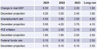 But were the Fed to highlight any internal debate about the pace or length of asset purchases (currently at USD 120bn/month) or revise its inflation or growth projections substantially higher then there is a risk of a sharp snap higher, potentially rising to the 1.60% level over a brief time frame.