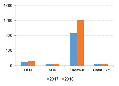 - In November 2017, GCC equity markets declined for a third consecutive month with the MSCI GCC Countries index losing -1.1%. This was primarily on account of crackdown on corruption in Saudi Arabia and renewed geopolitical tension. Ironically, the Tadawul was one of the very few indices to end the month in positive territory with gains of +1.1%. The DFM index dropped