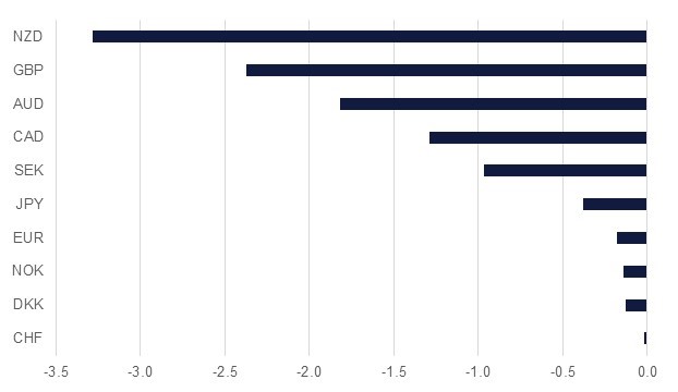 Such losses for the CNY also translated into weakness for the AUD and the NZD, with the NZD having the biggest losses (-3.3%) after the RBNZ also signaled it was open to cutting interest rates lower, even potentially taking them negative from their current 0.25%.