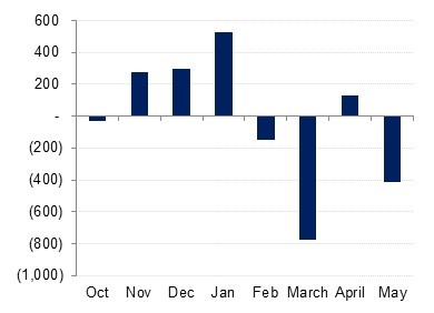 Unlike the DFM and the Tadawul, Qatar Exchange saw outflows in May 2020. Foreign investors sold shares worth QAR 415.8mn in May 2020 to take their aggregate selling in the first five months of 2020 to QAR 690.5mn.