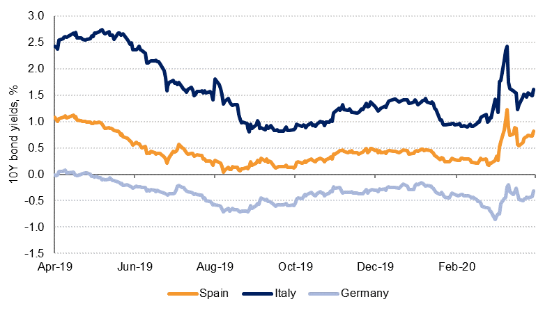 Eurozone finance ministers failed to reach agreement on a package of fiscal stimulus measures after a seven-hour meeting last night, with a press conference postponed to later this morning. The package being discussed could amount to EUR 500bn. The sticking point appears to be on the whether a jointly issued EU-wide debt instrument, dubbed coronabonds, are necessary. Northern countries are against this idea while some southern countries that have been hardest hit by the virus, including Italy and Spain are strongly in favour. A precautionary credit line from the Eurozone bailout fund for individual countries and EU support to pay wages of workers at risk of layoff are also being considered, as is guarantee fund from the European Investment Bank for businesses.