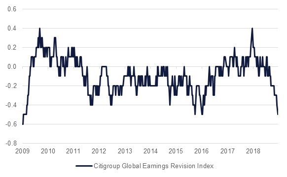 The start of 2019 was marked by a cut in earnings guidance by a couple of large market heavyweights. This has put the focus on earnings which has been the strongest pillar of support for equity prices over the last couple of years. It is becoming evident that the continued delay in tangible resolution in trade talks between the US and China and visible slowdown in economic activity is likely to weigh on corporate earnings. As per Citigroup’s global earnings revision index, analysts at the start of 2019 lowered the profit estimates by most since 2009.