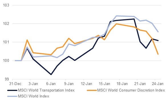 Following the fast-paced outbreak of the virus last week, investors appear to be positioning themselves accordingly. The first-degree impact of the same is generally felt on consumer discretionary and transportation sectors and hence it is no surprise to see stocks belonging to these sectors underperforming globally. Having said that it is worth noting that the broader sector indices remain in positive territory for the year.
