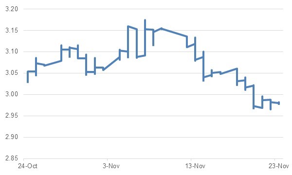 The Saudi Aramco IPO is currently accepting orders from investors. It is interesting to see that Saudi Aramco bonds have performed well since the announcement of the IPO price range. The Aramco 29s have rallied from USD 103.675 to USD 104.213 over the last week with yields dropping below 3.0% for the first time since early October 2019.