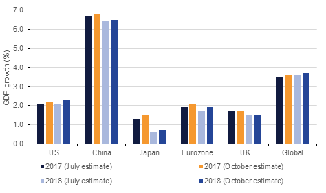 - Global macro: Despite an increasing incidence of geopolitical risks and uncertainty the momentum in the world economy appears to be improving, such that the IMF felt able to upgrade its economic outlook at its October meetings. Amidst stronger growth discussions about policy adjustments are continuing.