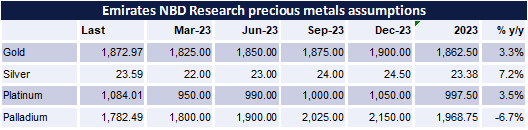 Gold prices have started 2023 in good shape, extending a rally from the last two months of 2022. Broad financial market expectation that the Federal Reserve will need to pull back on aggressive monetary tightening is helping to support the gold market even as Fed speakers show no sign of turning yet. We had expected that gold will do well in 2023 but thought the rally would come later in the year. We are now bringing forward our expectation that gold prices will move higher and be able to sustain at higher levels.