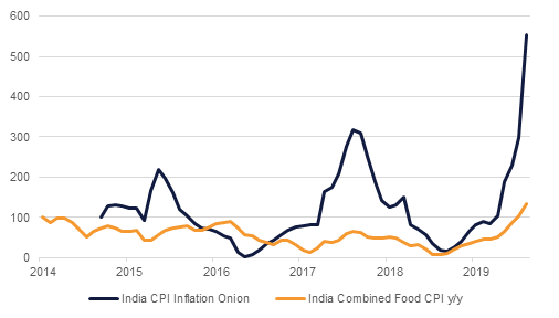 The pause in the interest rate cuts by the RBI can also partly be attributed to domestic pressures. The CPI for December 2019 came in at 7.35% y/y. This was the first reading above the central bank’s upper band target of 6% since July 2016. The spike in inflationary pressures over the recent months has largely been on account of higher food prices and lower base effects. Even within the food basket, the driving force has been onion prices. Encouragingly for the central bank, core inflation remains benign at 3.4% y/y. Having said that, the surplus monsoon rains and winter harvesting data suggest that food price pressures should ease from here on, relieving pressure on headline inflation.