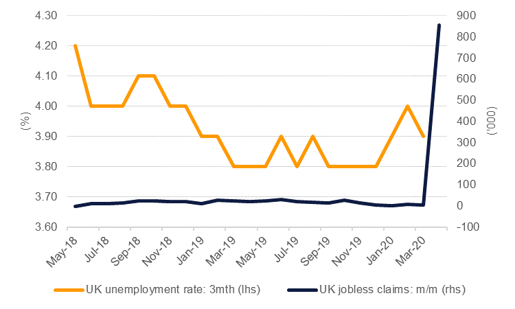 Labour data from the UK revealed how badly the jobs market was hit by lockdowns related to coronavirus. Jobless claims in April spiked to 856k compared with just 5.4k a month earlier. Data for the three months to March showed that the relative strength of the UK’s labour market was intact prior to the coronavirus taking hold of the country with the unemployment rate at 3.9%, actually lower than expected. The UK’s fiscal support measures have aimed to keep staff on payrolls through a wage subsidy scheme, unlike the US where the government has extended more unemployment benefits. Nevertheless, with the economy likely to endure a sharp contraction in Q2 the labour market in the UK is likely to show more and more weakening.