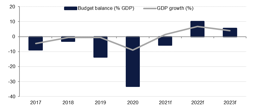 Because Kuwait’s fiscal year runs from 1 April to 31 March, the upgrades to oil price and production assumptions have had an impact on budget projections for both FY2022 and FY2023. We have revised the budget forecast for the current fiscal year up to -5.7% GDP from -11.2% previously. While the monthly budget data to February 2022 show a surplus for the fiscal year, there is usually a significant jump in expenditure in the final month of the fiscal year.