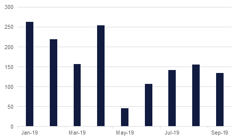 Trade tensions are also rising this time with Europe after the U.S. got the go ahead from the WTO to impose tariffs on USD7.5bn worth of European exports in retaliation for illegal government aid to Airbus. This is a different issue to the broader trade wars with China, but it still adds to the risks to global growth and to trade given the fragility of both. The U.S. plans to impose a 10% tariff on large civil aircraft from France, Germany, Spain and the U.K. It will also put 25% levies on a range of other products, and these will all go into effect on October 18th. The impeachment process in the U.S. is also heating up, with President Trump yesterday lashing out at his Democratic opponents, suggesting that the markets should brace for some impulsive behavior on a number of issues.