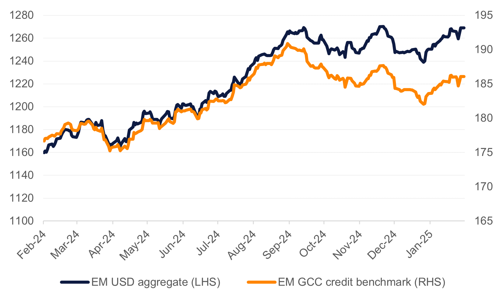GCC credit was quiet on a weekly basis with Bloomberg’s region wide index recording less than a 0.1% gain on the week ending February 14. High-yield and sukuk were the standouts although the weekly gains were negligible. At a geographic breakdown Bahrain bonds were the winner last week with a gain of 0.3% in the index while indexes for both the UAE and Saudi Arabia were flat week/week. Beyond the GCC Turkish bonds rallied by 0.3% week/week and Egyptian bonds added 0.6%.