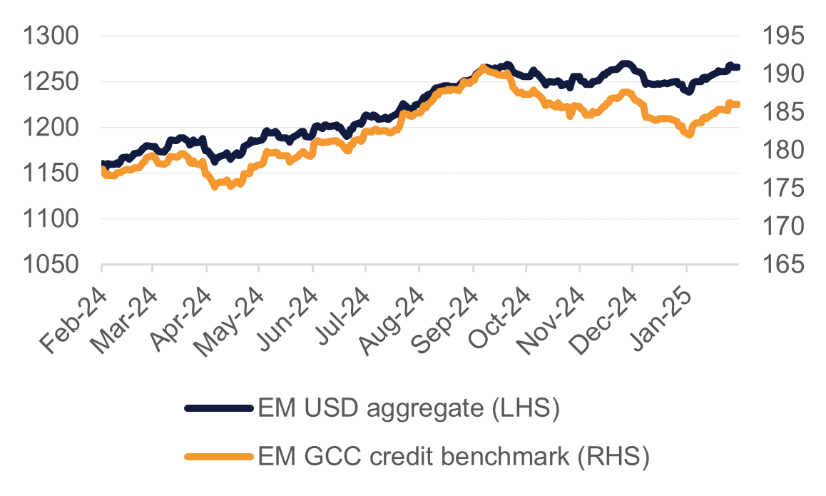 Emerging market hard currency bonds extended their year-to-date gains last week even amid the uncertainty around global trade as the administration of US President Donald Trump imposes or threatens tariffs. EM USD bonds rallied 0.4% last week, taking their year-to-date gains to 1.5% as of February 7. Many mid- to large emerging economies have a high dependency on trade for their economies, as exporters of raw materials or value-added goods, and the threat of a global trade war could be an outright negative for economic performance this year.