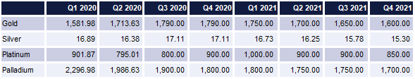 The upward push in gold will pull the rest of the precious metals prices higher but the relative gains will be limited by their much higher industrial demand profiles. We expect silver and platinum to underperform gold this year while supply constraints continue to support the palladium outlook.