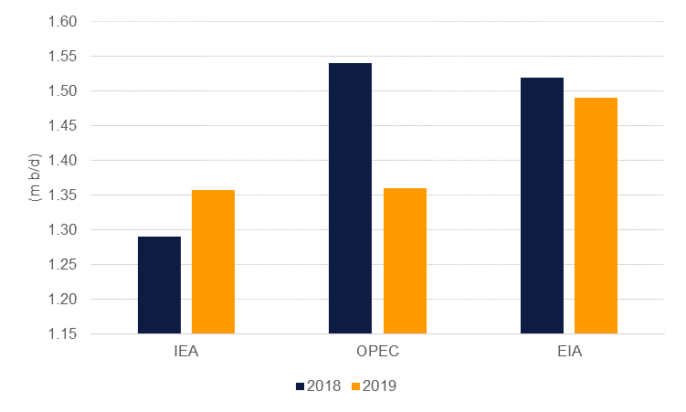 Both the IEA and OPEC cut their oil demand growth forecasts for 2019 last week on a weaker economic outlook in several large oil importers. The IEA expects 2019 demand at 1.36m b/d, up from 1.28m bb/d this year while OPEC sees an opposite trajectory, with growth slowing from 1.5m b/d to 1.36m b/d next year. Both agencies cautioned that oil markets were currently adequately supplied which may give OPEC oil market policymakers pause as they consider whether to raise production and possibly cause a market surplus in 2019. We still see considerable uncertainty in the 2019 demand outlook but find an acceleration in oil demand growth an outside chance, rather than our core expectation.