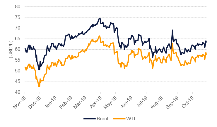 OPEC holds its next meeting on December 5th, joined by non-OPEC participants in its production cuts the following day. Faced with a 2020 demand outlook that is beset with downside risks thanks to the trade conflict and general downturn in industry globally, OPEC+ has few enviable choices at its meeting. A rollover of the current production cut agreement appears to us the most likely outcome although there is a chance the producers’ bloc could endorse deeper level of cuts. But there is no guarantee that heavier cuts would result in prices ending up near where OPEC+ economies need them to balance budgets or keep external accounts stable. A higher level of cuts of 1.75m b/d (a near 50% increase on the current agreement of 1.2m b/d) would still result in a surplus of around 800k b/d in H1 2020 before a moderate deficit emerges in H2. That also assumes that all participants achieve 100% compliance with the higher level of cuts. Considering OPEC+ performance this year where good aggregate compliance has only been achieved thanks to enormous over-cutting by Saudi Arabia, we doubt that 2020 would see any improvement in individual country compliance.