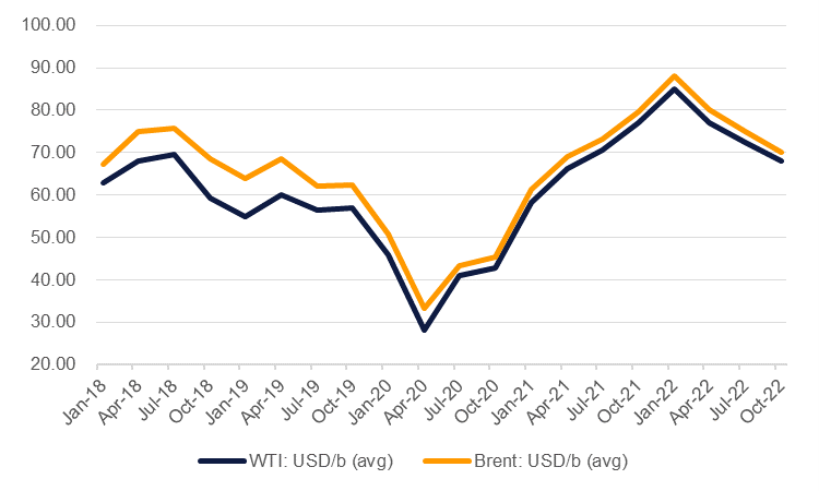 Our initial projection for oil prices in Q1 2022 was for an average of USD 75/b on the Brent market and USD 72.50/b in WTI. Given the geopolitical risks in the market those levels now appear too low so we are marking our forecasts to market and revising our price targets higher. We now expect Brent at an average of USD 88/b in Q1 before moving lower over the remainder of the year, bringing the annual average to USD 78/b, up from closer to USD 70/b previously. For WTI we expect an average of USD 85/b in Q1 before following a similar trajectory to Brent and recording an average of USD 76/b for 2022, up from USD 67/b previously.