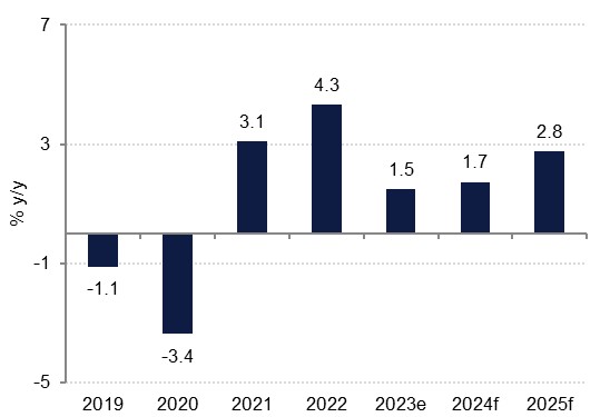 With oil sector growth set to be dampened once again by constraints on production growth, it will be the non-oil sector that drives the expansion in Oman this year. We forecast non-oil growth of 2.5%, which would be in line with both our estimate for last year and moderately stronger than the average over the decade to 2022 (2.2% pa). Over the first three quarters of last year, non-oil sector growth averaged 2.7% y/y.