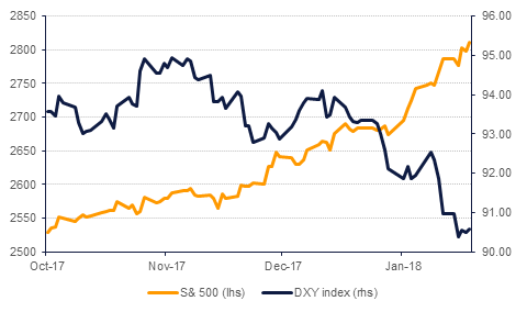 Strong economic data and the standoff over a US Government shutdown caused a steepening of the US treasuries curve last week which received further technical support from a fall in year-end demand recorded in December for longer dated treasuries from pension funds. Yields on 2yr, 5yr and 10yr treasuries closed at 2.06% (+7bps), 2.45% (+10bps) and 2.66% (+11bps) respectively. In contrast, government bonds in the UK recorded lower yields on shorter dated bonds and stable to only marginal increase in longer dated bonds. Yields on 10yr Gilts closed at 1.34% (+2bps). Subdued December inflation (core at only 0.9% y/y) in the Eurozone caused 10yr Bund yields to closed lower at 0.56% (-2bps).