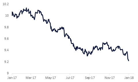 The Moroccan authorities have taken the first steps towards a floating currency by widening the band within which it allows the dirham to trade on January 14. It can now move within a daily limit of 2.5% above or below the official rate, compared to the 0.3% either side previously. This step has been long-mooted and had been scheduled in 2017, but was postponed after a rush on foreign currency prompted a precipitous fall in reserves in June. Concerns over the disorderly removal of the Egyptian pound’s peg in November 2016 may also have played a part. However, Morocco, a regional top-pick which is attracting considerable foreign investment already, is loosening its peg from a position strength, and we do not expect any negative fallout from this move.