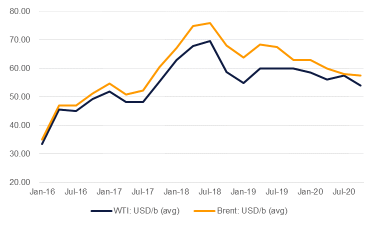 OPEC has agreed to extend its production cuts into the first quarter of 2020 and will get support from non-OPEC countries, such as Russia, in restraining output. Cutting production has had a measure of success in drawing down inventories and supporting prices but its effectiveness is starting to wane and may have a limited impact on balances heading into 2020. Factors well outside the control of OPEC+ will exert a significant drag on oil prices over the next 12 months, limiting Brent to an average of USD 60/b in 2020.