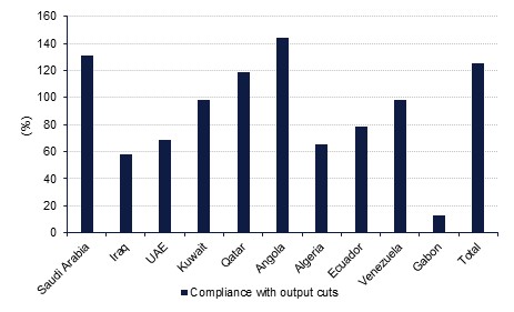 The latest data from OPEC showed another monthly increase in production in June thanks largely to Nigeria and Libya, neither of whom are participating in the current production cuts. According to OPEC's data, compliance with the production cuts remains high but it still showing a disparate level of performance at the country level with Saudi Arabia achieving compliance of more than 120% while the UAE is a little over 80% compliant. OPEC's projections for 2018 show a decline in the 'call on OPEC', the level of OPEC oil needed to balance markets as output from other producers will expand by over 1.1m b/d.