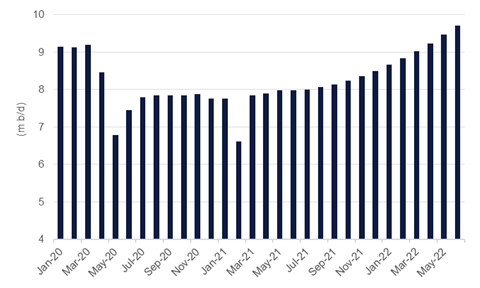 All the major forecasting agencies project a large increase in non-OPEC supplies in 2022 with the EIA the most bullish at a 3.2m b/d increase y/y. High spot oil prices and a futures curve, while backwardated, that is still above the operating expenditure costs of most producers in the US should help to encourage production growth in 2022, even if it falls short of the rapid pace seen in the years before the pandemic. At the current pace of rigs being added, and the productivity of those rigs, we estimate that US shale basins could produce above their March 2020 levels by as early as April 2022, recovering almost 2.5m b/d from their May 2020 lows.