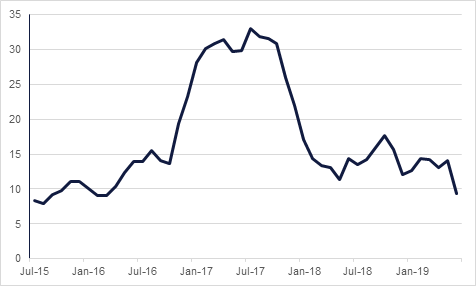 Egypt’s CPI inflation slowed sharply in June, falling to 9.4% y/y, from 14.1% in April. This was the slowest pace since March 2016. On a monthly basis, the CPI price basket contracted -0.8%. Nevertheless, we still believe that the CBE will hold rates at its MPC meeting today, given the inflationary pressures which the most recent round of subsidy reforms, implemented earlier this week, will bring to bear.