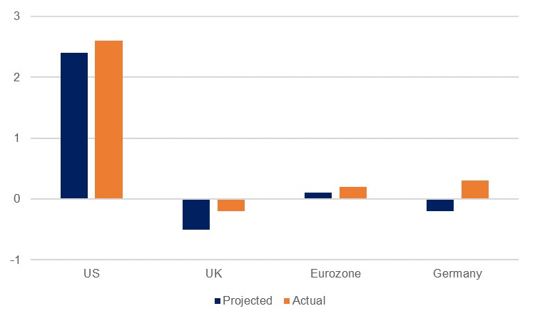 Source: Bloomberg, Emirates NBD Research. US figure is annualised growth