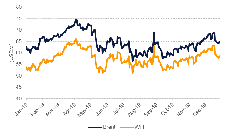 Oil markets held steady last week, recording modest declines in both Brent and WTI futures, as China’s slow GDP growth figures were largely anticipated by the market and agency forecasts affirmed market expectations of large supply growth outside of OPEC. Brent futures settled at USD 64.85/b, down 0.2%, while WTI gave up 0.85% to end the week at USD 58.54/b. While the year has only just begun, oil prices have failed to reap any of the benefit that risk assets have recorded so far this year. The S&P 500 index has gained 3.1% year-to-date, far outperforming the 4.1% year-to-date decline in WTI futures and 1.7% drop in Brent.