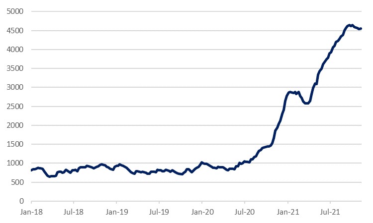We hold to the view, shared by developed market central bankers, that much of the upwards price pressures of recent months will dissipate next year. Food and energy costs will soften and potentially even become deflationary (we forecast an average Q4 2022 Brent crude price of USD 60/b, compared with around USD 82/b today), and while the supply chain issues are harder to quantify, here too we would expect the upwards pressure to soften. Covid-related disruptions should ease, and we are already seeing a levelling off of the sharp upwards surge in the cost of shipping containers seen earlier in the year.