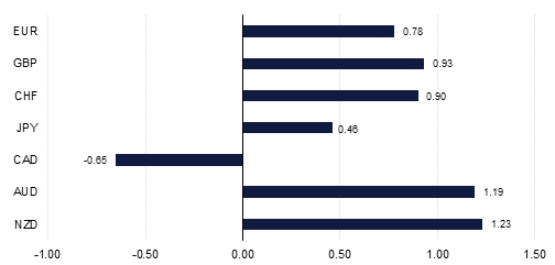 Risk on sentiment was boosted by strong US jobs data at the end of last week, which reinforced the better than expected Q3 GDP growth data (1.9%) seen earlier in the week. U.S. October nonfarm payrolls increased 128k after an upward revised 180k gain in September and 219k in August, leaving a much stronger profile of jobs growth over the last three months. The unemployment rate rose slightly to 3.6% from 3.5% previously and average hourly earnings were up 0.2% versus the prior unchanged reading and were steady at 3.0% y/y. With equities and bond yields improving currencies also benefited at the dollar’s expense, with most major currencies recording gains on the week. Expectations about further cuts in US interest rate have not surprisingly diminished, although we still retain a further 25bps cut in our forecasts for next year reflecting the uncertain landscape both politically as well as economically in 2020 in the US.