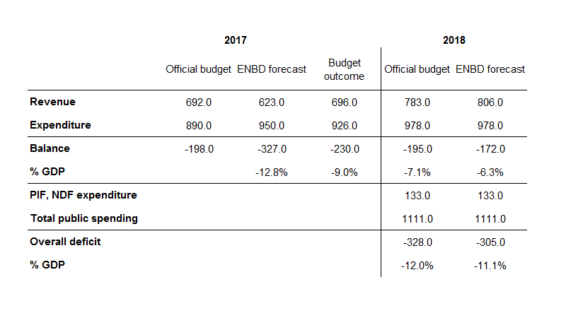 The strategy is commendable: following two years of subsidy reform and spending cuts, the government is using some of the fiscal room it now has (higher oil prices, substantial accumulated reserves) to slow the pace of further fiscal adjustment. The aim is no longer to achieve a balanced budget by 2019, which would potentially have meant another year of recession in 2018. By slowing the pace of deficit reduction, the authorities are able to boost non-oil growth next year and offset further subsidy reforms with cash grants to qualifying households, and also invest further in much needed infrastructure.