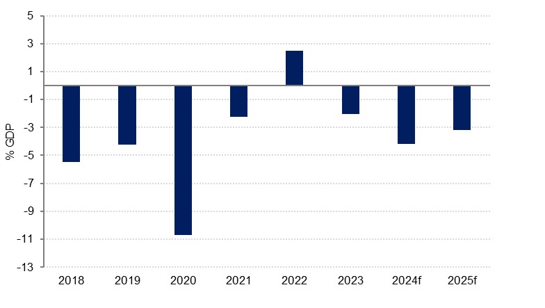 Saudi Arabia has reported a budget deficit of SAR 80.1bn for 2023, equivalent to 2.1% of GDP. This is moderately wider than the 1.9% shortfall we had forecast and stands in contrast to the 2.5% surplus seen in 2022, which was the first positive balance since 2013.