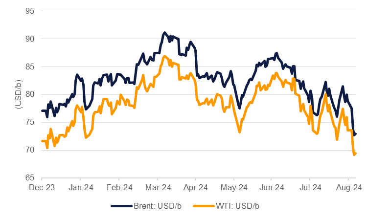 Confidence on the macro narrative for oil demand is dissipating. The slump in prices this week looks to have been sparked by weaker Chinese data. China’s manufacturing PMIs for August dropped to 49.1, holding below the neutral 50 level for the last four months. Elsewhere, expectations of weaker labour market conditions in the US—with non-farm payrolls data to be released later this week—will reinforce fears of a pending recession in the US economy even after a solid Q2 GDP print.