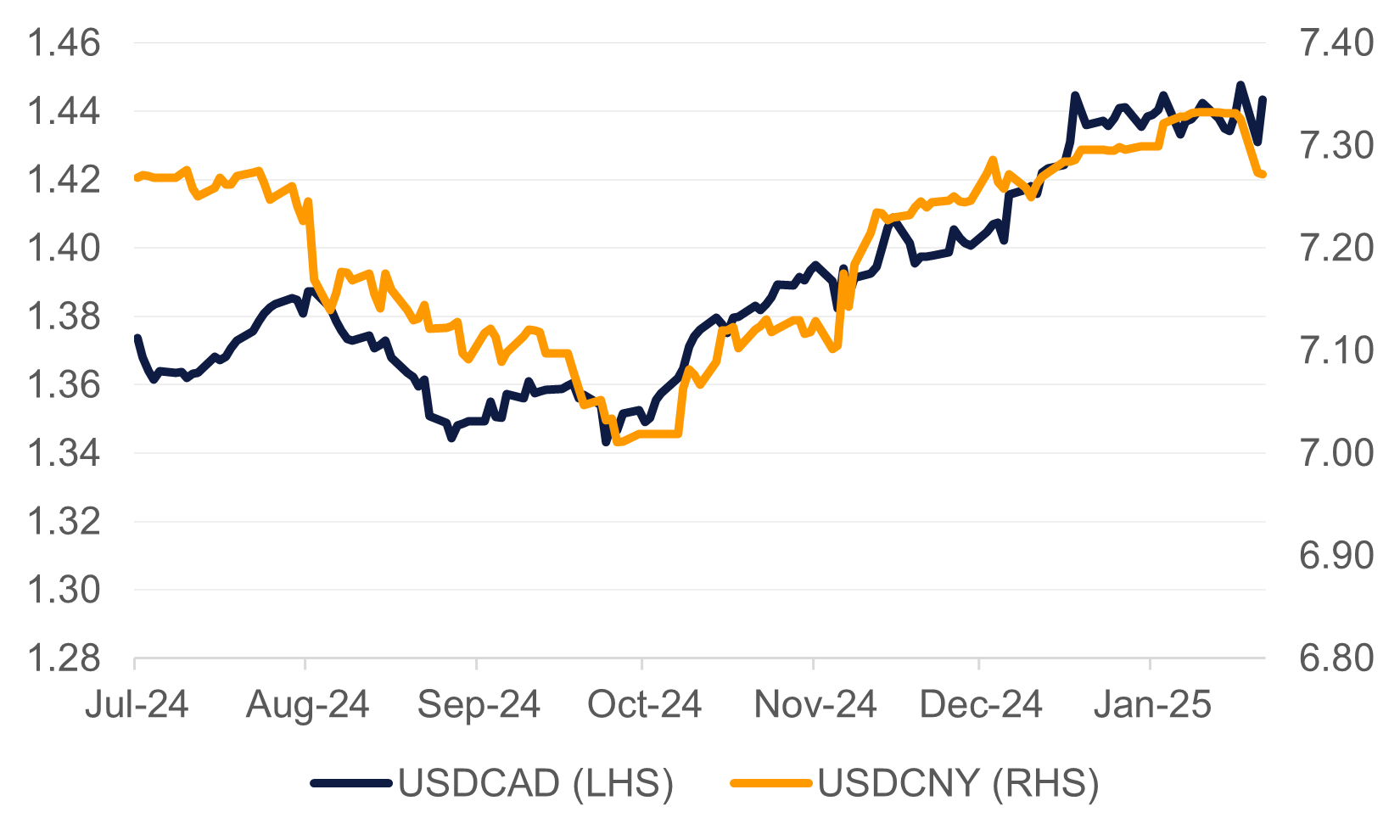 Markets have interpreted the executive orders announced so far as disruptive to global trade. Both the Mexican Peso and Canadian Dollar weakened considerably against the US dollar following President Trump’s comments on tariffs while the absence of a specific tariff on China has seen the CNY rally sharply.