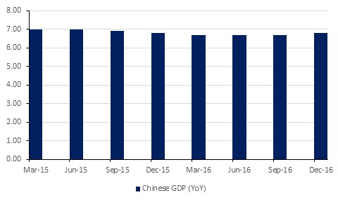 Markets had been hoping for more details about the US government’s new fiscal plans, which would have been viewed bullishly by equity markets as well as by the dollar. Last week’s economic news was quite positive, but with inflation rising above 2.0% in December, any further stimulus could easily see price pressures rise further, causing the Fed to raise interest rates more quickly. The coming week will see Q4 GDP growth data for the US as well as for the UK, which are expected to show the pace of growth slowing slightly in both countries. Growth in China firmed slightly to 6.8% in Q4, but for 2016 as whole it rose by 6.7% y/y in line with the Chinese government’s target of between 6.5-7.0%.