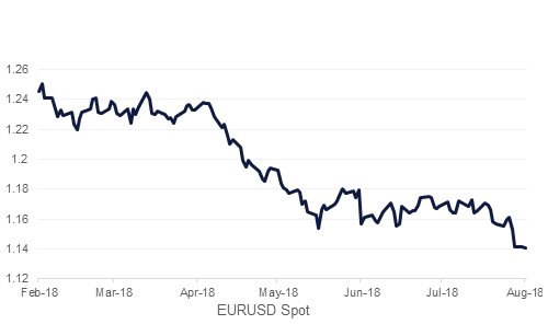 This afternoon, investors will be looking towards Europe, where UK employment data and Eurozone aggregate GDP data for Q2 2018 are expected. With both EUR and GBP falling significantly over the last week, any downside surprises in the data may catalyze greater losses for EURUSD and GBPUSD.
