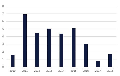 The UAE has released its real GDP growth figures for 2018, showing an expansion of 1.7%. This marked an acceleration on the 0.8% seen in 2017, and the expectation is that there will be a further improvement in growth this year, with the Central Bank forecasting an expansion of 3.5% in 2019. The non-oil sector posted growth of 1.3%.