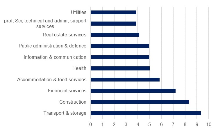 The travel and tourism sectors continued to power non-oil growth in Q2, and transport & storage was the fastest growing component of GDP, logging Q2 growth of 9.3% following 7.3% in Q1, and accounting for 5.6% of total output. The sector has been boosted in particular by strong growth at the UAE’s two primary airports of AUH and DXB, which have seen robust y/y growth in passengers. At Abu Dhabi H1 passenger numbers were up 34% while Dubai International saw a gain of 8% and is on track for a record year this year (see Growth at DXB fueling Dubai economy). The logistics sector has also seen a strong year so far, with Jebel Ali seeing H1 container throughput rise 3.9% y/y to 7.3mn TEUs (see Jebel Ali: Facilitating Dubai's growth agenda).