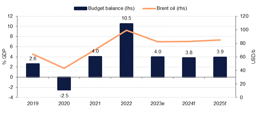 In 2024, we expect non-oil growth to slow only slightly to 4.5% on the back of slower global growth. Continued structural reform to improve the business environment and attract investment is expected to underpin aggregate demand, albeit at a slower pace than in 2023.