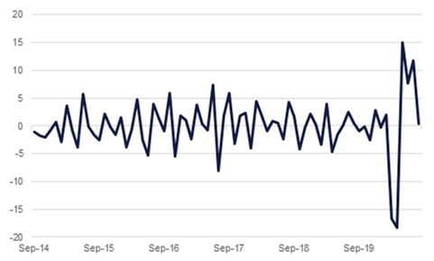 Data out of the US at the close of last week indicated that the recovery is slowing from the post-lockdown resurgence seen earlier in the summer. Durable goods orders rose just 0.4% m/m, missing expectations of 1.5%, and markedly slower than the upwardly revised 11.7% seen in July. That said, the ailing aerospace sector weighed on the headline figure, and orders for non-defence capital goods excluding aircraft rose 1.8% m/m. In other data released last week, initial jobless claims came in at 870,000 in the week ended September 19, illustrating that despite the nascent recovery in the US, it has largely been jobless to date, and the labour market remains a parlous one. Meanwhile, tensions between the US and China continue to make headlines, as the US has imposed export sanctions on Chinese firm Semiconductor Manufacturing International Corp, meaning that US companies will need a license to sell it certain products.