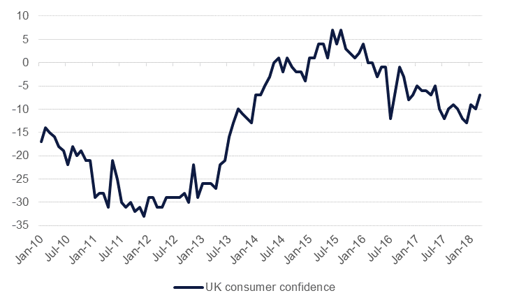 Consumer confidence in the UK improved in March according to the latest data as inflation began to ease and negotiations over exiting the EU took on a more positive hue. The GfK poll reported UK consumer confidence at -7, better than the market had been expecting and an improvement from a report of -10 previously. However, the data still remains in negative territory where it has been since the Brexit vote occurred. More data out from the UK showed private sector growth in Q1 is likely to have slowed as poor weather conditions affected output.